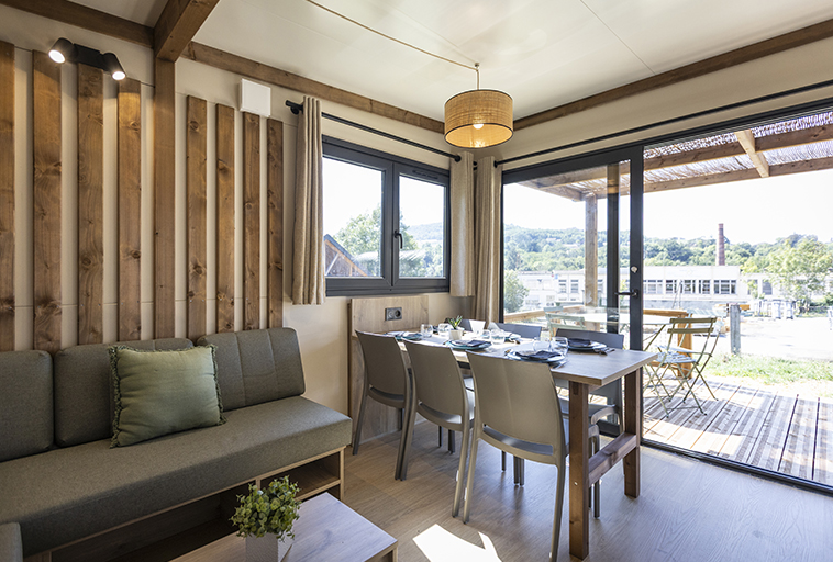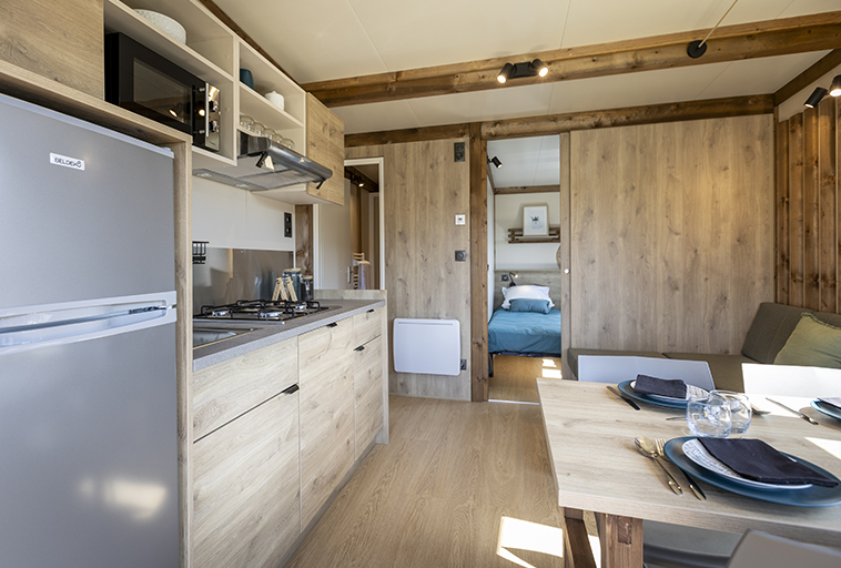 Le mobile home est composé d'un salon avec table avec chaise et coin cuisine. Dans la partie salon vous trouverez une climatisation.