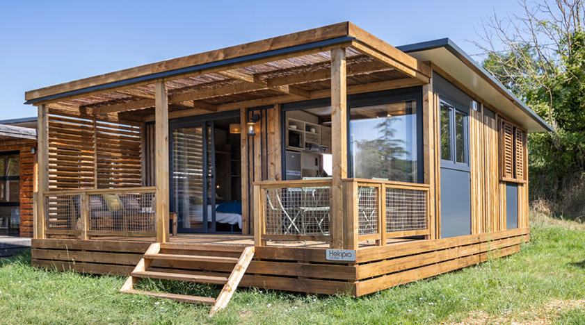 Version de base d'un mobile home Mobile home moderne pour 5 personnes avec cuisine et terrasse extérieure